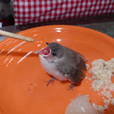 我讓牠先住在數學課教具1000立方公分的豪宅裡,拿了一小把小白鼠的飼料給牠,仔細看看,牠好像沒有受傷,見體型應該還是正在學飛的雛鳥,去請教花蓮縣野鳥學會的總幹事──三年三班曾啟銘老師,研判是烏頭翁,是台灣特有種喔!