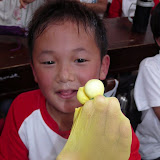 感謝吳桂香老師指導,在美勞課做的戲偶,是用一隻彩色絲襪、保麗龍球和幾條毛線做的,套在手上感覺很可愛,好像冰原歷險記裡的樹懶喜德喔!