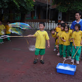 ↑ 下午到五年四班上鄉土課,接到健康中心通知要去檢查牙齒,看到一年級小朋友在老師的帶領下在進行大泡泡的課程。
